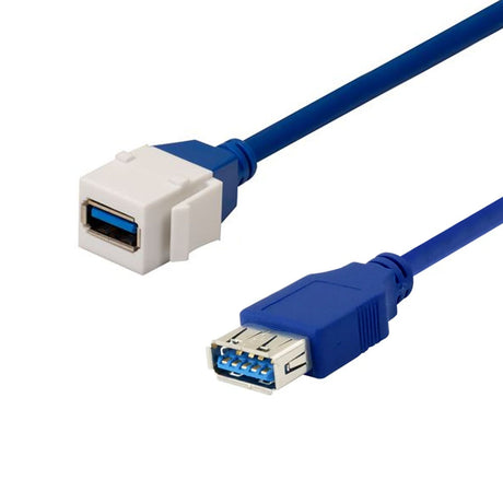 Acegear USB30COUPLERWH8IN USB 3.0 A Female to A Female KeystoneWITH 8" Cable White (Each)