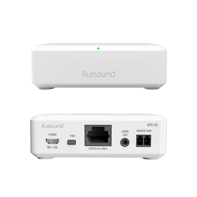 Russound's BTC-2X transceiver adds Bluetooth connectivity to any audio system with an analog aux input. Simply connect this unit to your receiver or amplifier using the stereo analog 3.5mm output (cable adapter may be required; not included) and you're ready to stream clear, strong Bluetooth 5.1 audio from your phone, tablet, or computer.